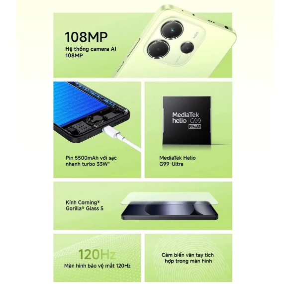 Pin 5500mAh + sạc nhanh 33W: dùng bền cả ngày, sạc lại nhanh khi cần.