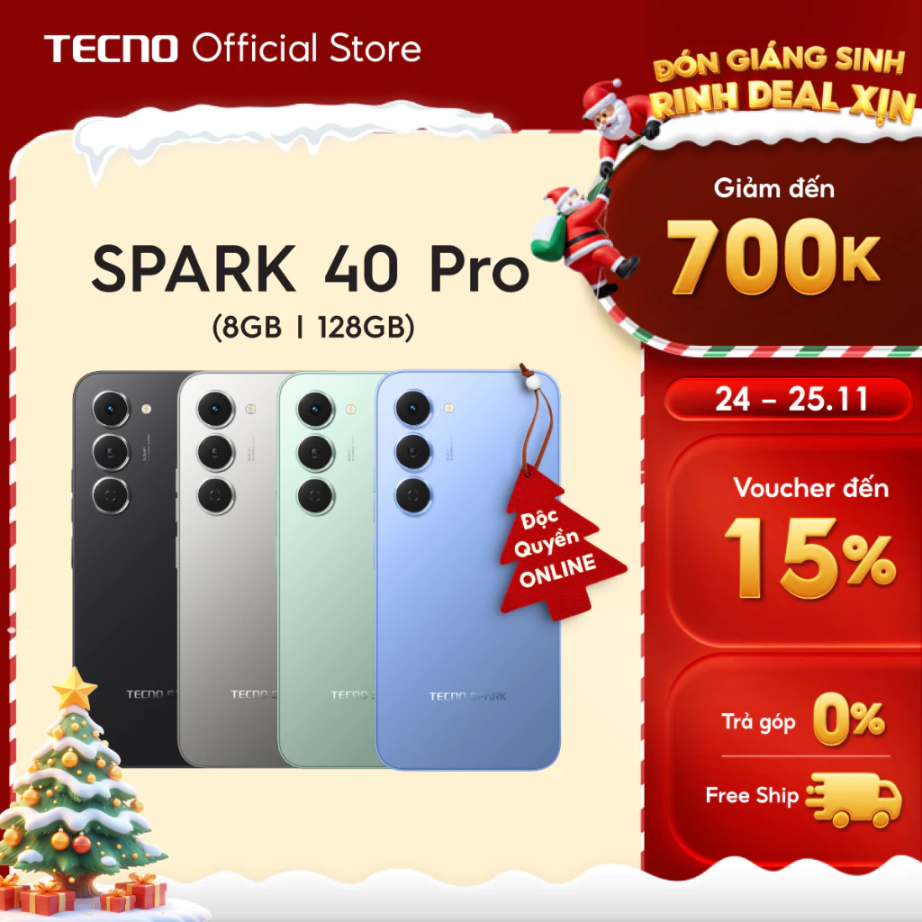 Điện thoại TECNO SPARK 40 PRO (8+8)GB/128GB – Màn hình AMOLED 1.5K & 144Hz | Mỏng 6.69mm | 5200mAh sạc 45W